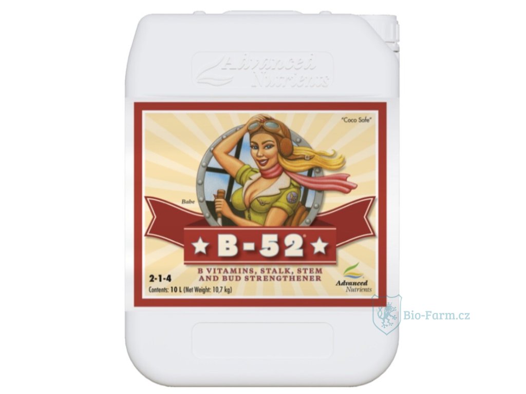 Experti na pěstování jistě uznají, že B-52 je výborný k zesílení a vyživování klonů, rostoucích i kvetoucích rostlin. Díky vysokému množství vitamínu B1 a B6 produkt zaručuje posílení rostlin, rychlejší růst a vyšší ůrodu. Je to tak jediné hydroponické tonikum se speciálním obsahem vitamínů B, kyseliny humusové, chaluh. Díky podpoře růstu kořenů, usnadňuje absorpce základních živin a stopových prvků, takže se sazenice vyvíjejí rychleji. Lze použít ve všech hydroponních a aeroponních aplikacích i systémech s kapkovou závlahou, bez ohledu na pěstební médium. B-52 je zcela v kompatibilitě se všemi PH perfect základními hnojivy a jinými doplňky Advanced Nutrients.