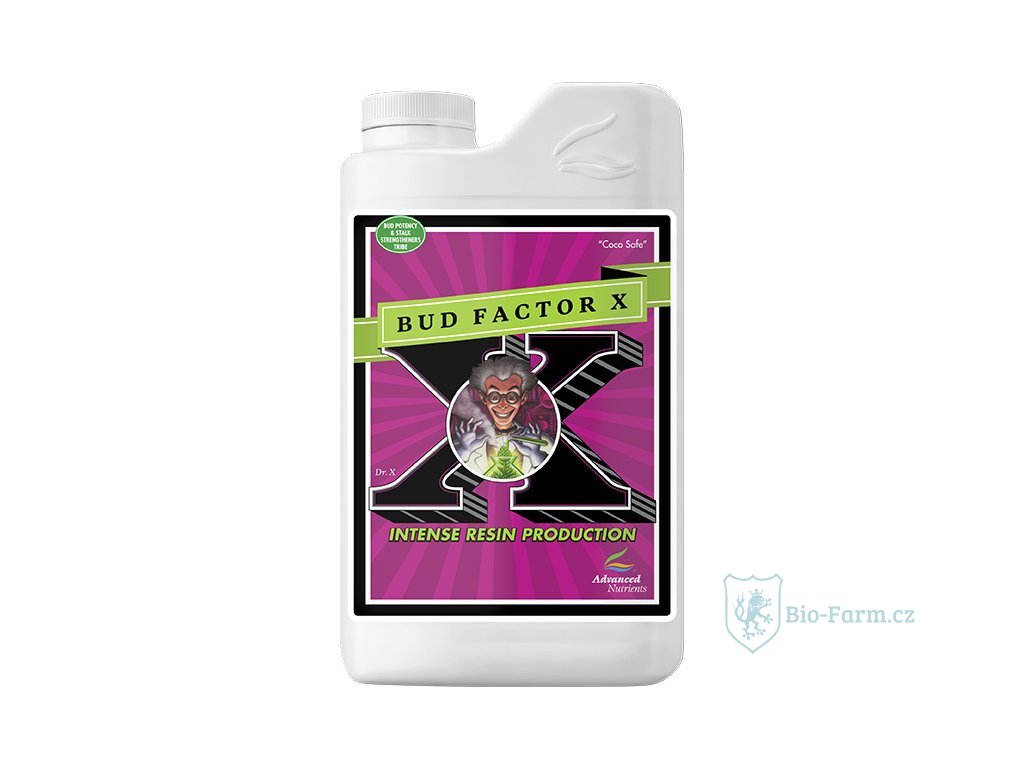 Nikdy není pozdě zmaximalizovat vaší úrodu. Esenciální oleje jdou ruku v ruce s chutí, vůní a obsahem pryskyřice. Esenciální oleje a pryskyřice obsahují terpeny, těkavé vonné látky. Bud Factor X obsahuje magnesium a bio-aktivní látky pozitivně ovlivňujících produkci terpenů, esenciálních olejů a pryskyřice. Ingredience Bud Factor X zvyšují nejen kvalitu výnosu, ale také kvantitu. Rostliny jsou podporovány v závěru života ve fotosynterických procesech, i když mají přirozeně tendenci jejich aktivitu snižovat, čímž se dosahuje vyšší produkce. Dusík a vitamíny B ve složení Bud Factor X podporují také kořenovou činnost zvláště v kombinaci s Piranha, Voodo Juice a Trantula.