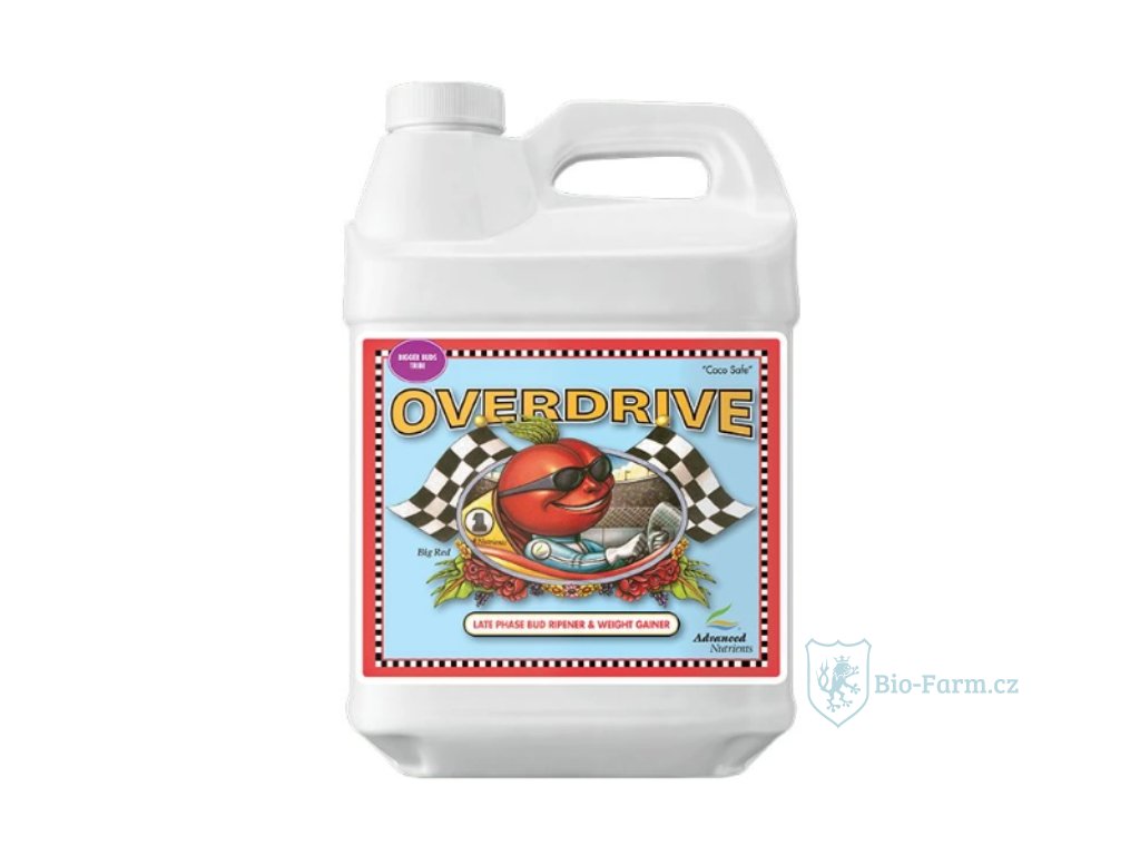 Advanced Nutrients Overdrive nahrazuje na poslední dva týdny květu dlouhodobý stimulátor Big Bud. V této poslední fázi rostlinám přirozeně klesá hladina hormonu kvetení. Tím dostávají impuls, že se blíží konec jejich života, přestávají budovat květovou hmotu a zaměřují se na dozrávání.