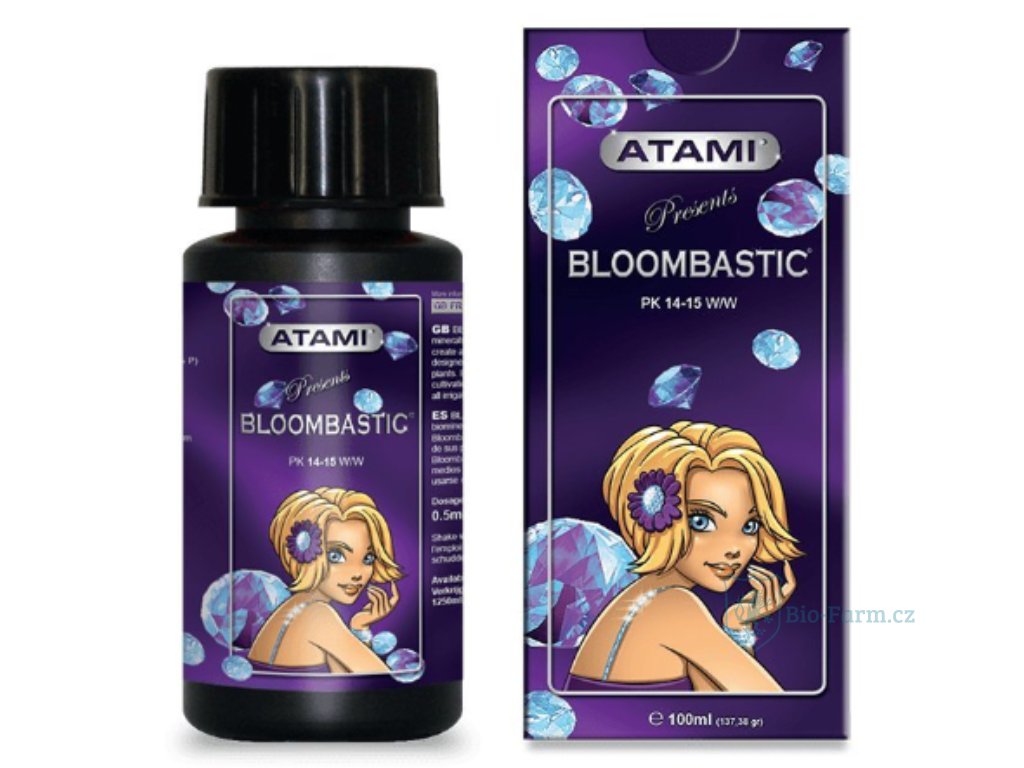 Jedinečná kombinace minerálů a stimulátorů pro podporu květu a dozrávání, to je Atami ATA Bloombastic. Zvyšuje podíl cukru a ovlivňuje tak chuť výsledného produktu. Rostlina se díky němu stává odolnější. Tento speciální koktejl neobsahuje sodík ani chlor, Atami ATA Bloombastic narozdíl od jiných tekutých hnojiv obsahuje více než 50% bio-minerálů (fosfor, draslik). Toto hnojivo je složeno z fosfátu draslíku, hydroxid draselný, kyselina fosforečná, EDTA železa, oxid fosforečný, zemní minerály.
