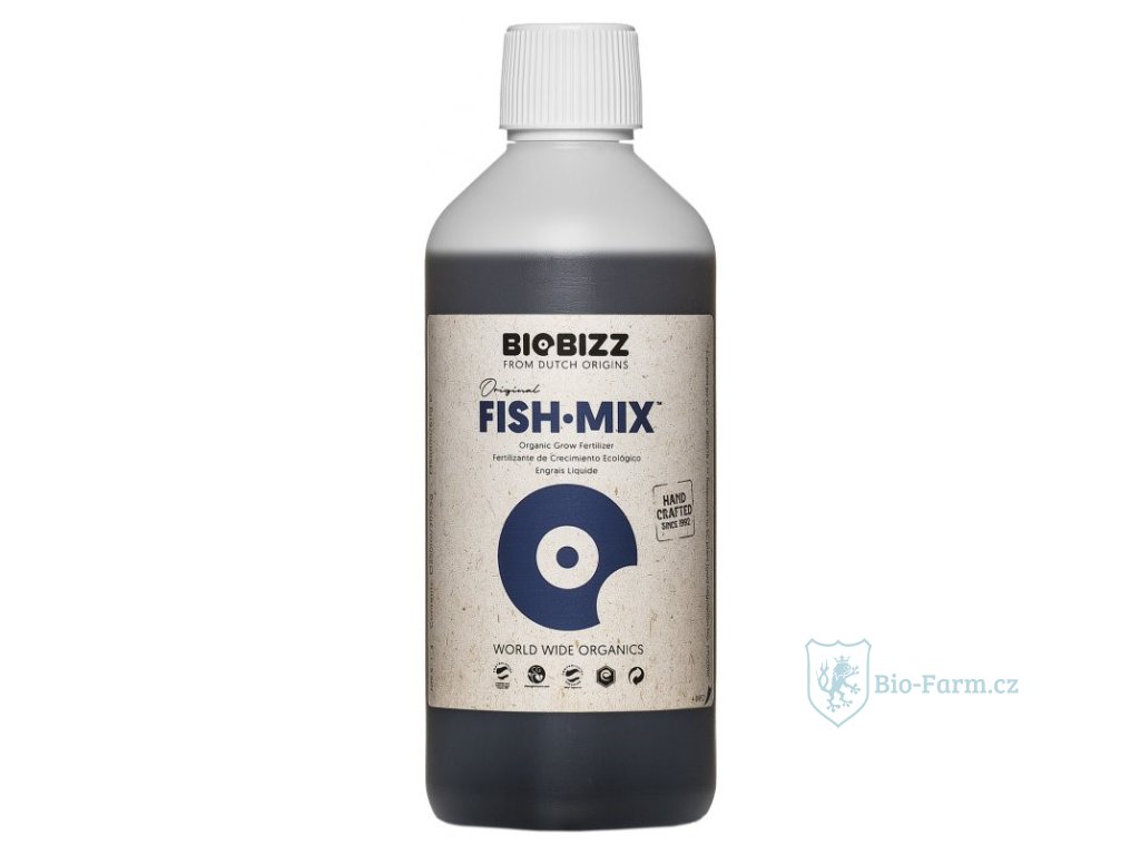 BioBizz Fish-Mix je 100% organický doplněk pro rostliny v růstu a květu. BioBizz Fish Mix významně vylepšuje mikrobiologický život v půdě (hlavně kolem kořenů) a zrychluje růst rostlin. Jedná se o výluh z organické rybí emulze ze Severního moře smíchané s extraktem z holandské cukrové řepy. Je velmi aromatický, a proto je možná vhodnější pro outdoor pěstování.