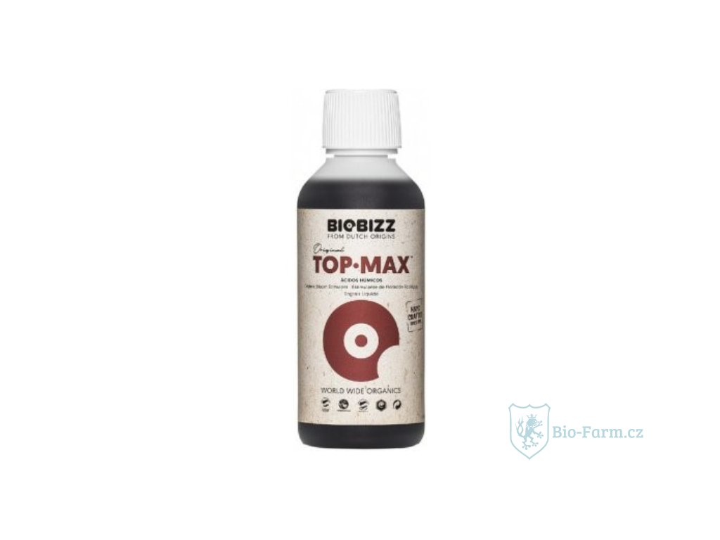 Organický stimulátor BioBizz Top-Max je určen pro období květu. Zvětšuje květy, zvyšuje příjem živin, plody jsou sladší a chutnější.