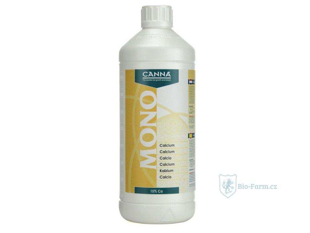 Canna Mono Vápník, Ca 12% lze použít jako vápníkové hnojivo při nedostatku vápníku anebo jako součást doplňkové výživy pro stimulaci růstu. Dostupný v jednolitrovém balení. Využitelný po celou dobu života rostliny.