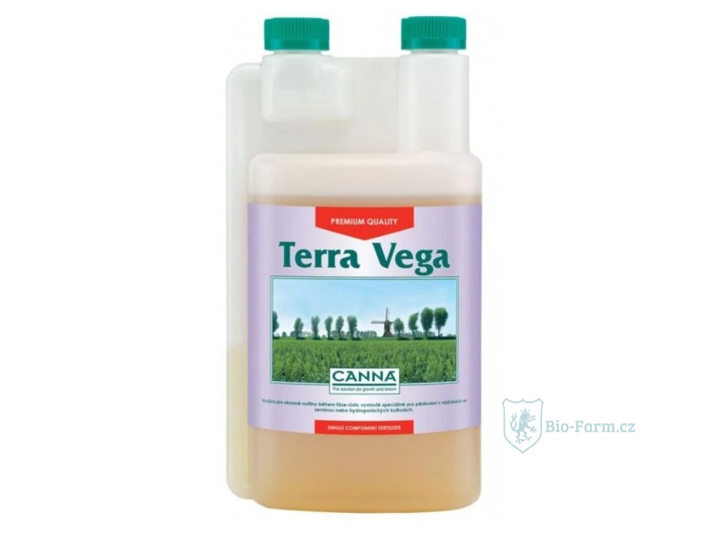 Životně důležité postranní výhonky a bujný kořenový vývoj charakterizují zdravý, silný růst a vytváří základ pro velké sklizně. Tato výživa byla vyvinuta, aby vyhověla požadavkům rostliny během fáze růstu. Celková absorpce vody a dávkování od začátku pěstování je také zaručena, protože Canna Terra Vega je bohatá na dusíkaté sloučeniny, které mohou být přímo absorbovány, vysoce hodnotné EDDHA železné cheláty a stopové prvky.