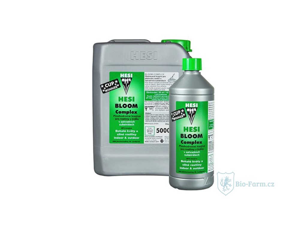 Obohacené hnojivo Hesi Bloom Complex, je určeno pro pěstování rostlin v zahradních substrátech v období květu. Obsahuje NPK živiny i vápník, hořčík nebo stopové prvky. Dusík je minerálního i organického původu a tak nehrozí předávkování rostliny.