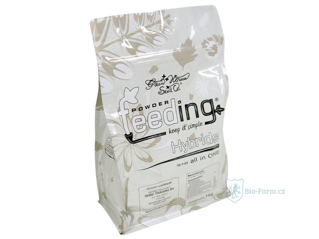 Powder feeding Hybrids je speciálně navržené práškové hnojivo pro růst a květ těch odrůd rostlin, které pocházejí z hybridních kříženců se střední dobou kvetení, 8-9 týdnů. Obsahuje pečlivě připravené makro a mikro-prvky s vyváženým složením, pro všechny fáze růstu a květu. Bez přidávání dalších komponentů v průběhu celého cyklu, živiny jsou poskytovány ve správném poměru pro snadné vstřebávání, ideální pro rostliny se střední dobou květu.