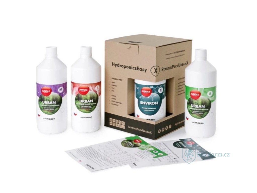 Jungle In Da Box Urban X StarterPack je kompletní sada třísložkových biominerálních hnojiv (A, Mikro, B) a univerzálního květového stimulátoru X, navržená pro celý pěstební cyklus rostlin v indoor prostředí. Tato česká sada hnojiv je ideální pro začátečníky i pokročilé pěstitele díky snadnému použití a vysoké efektivitě.