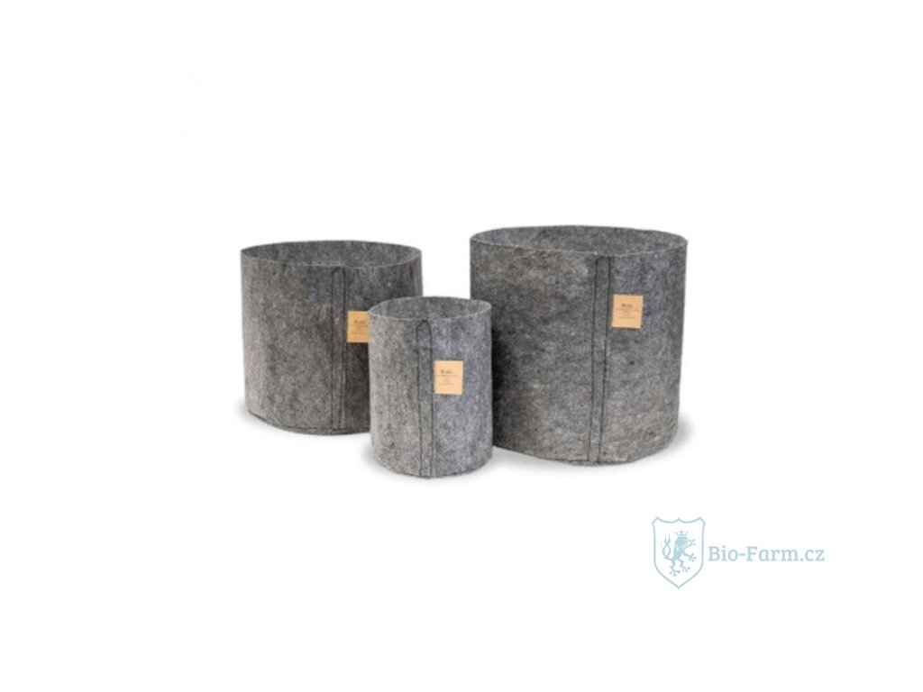 Grey Line Root Pouch - textilní květníky vyrobené ze směsi recyklovaných pet lahví a přírodních vláken. Ty umožňují pěstování v zemi, čerpají vodu a živiny z okolní půdy a jsou dostatečně odolné pro pěstování nad zemí. Životnost: cca 18-24měsíců při pěstování v zemi a také nad zemí vydrží až několik sezón! Objem: 12L, Rozměry: 30x30cm. Směs přírodních vláken 250g/m2.