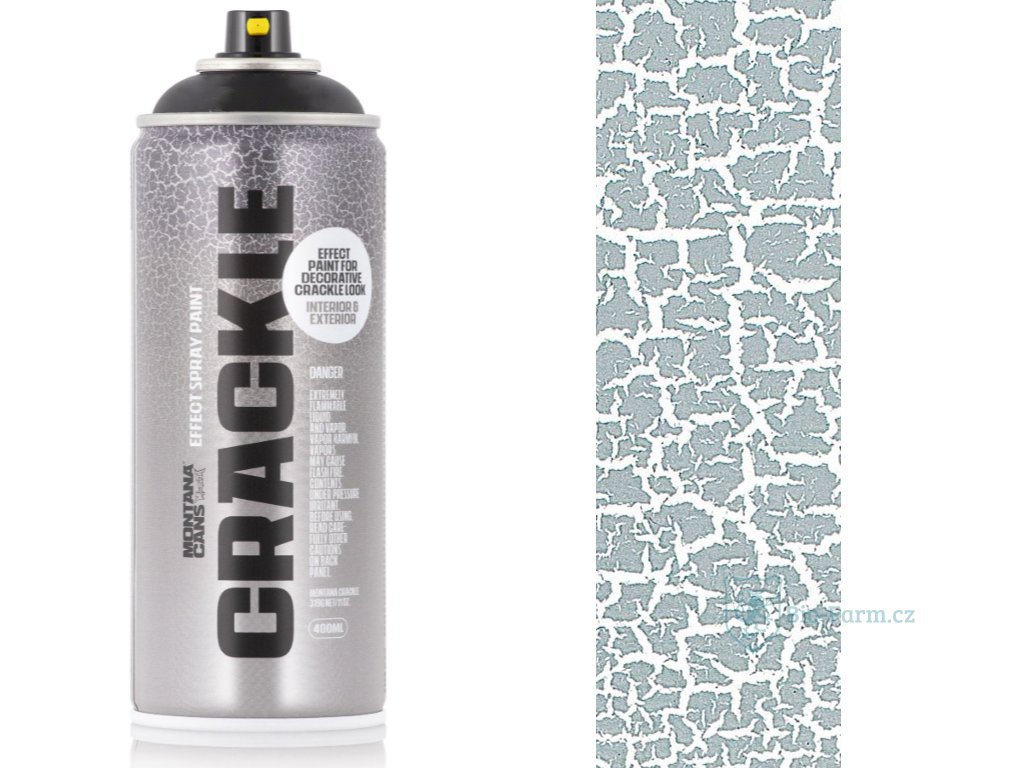 Aby se kouzlo povedlo, je potřeba CRACKLE nanášet na povrch, který je už natřený jinou barvou. Skvěle si rozumí se základem z řad Montana GOLD nebo Montana BLACK. Jakmile začne CRACKLE sprej na podkladu schnout, začne se smršťovat a vytvářet ty charakteristické praskliny. Čím silnější vrstvu nastříkáš, tím větší a výraznější praskliny získáš.