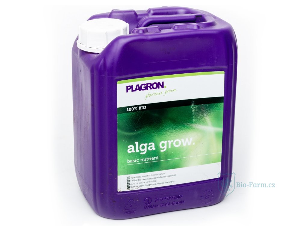 Plagron Alga Grow je základní organické růstové hnojivo s vyladěným obsahem NPK živin (draslík, fosfor, dusík). Hnojivo se vyrábí z mořských řas a obsahuje přesně vyvážený poměr dusíku, fosforu a draslíku (2,9 - 4,9 - 6,9), aminokyseliny, hořčík (síru, vápník) a stopové prvky (Fe, B, Mo, Cu, Mn, Zn), které rostlina snadno vstřebává. Alga Grow zvyšuje obranyschopnost rostliny a podporuje přirozenou cestou tvorbu chlorofylu.