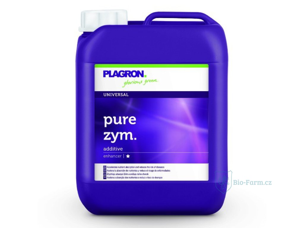 Plagron Pure Zym obsahuje proteiny produkující bakterie a houby, které fungují jako biokatalyzátor při látkové přeměně molekul na jiné pro rostliny snáze vstřebatelné. Tak může rostlina přijímat živiny a kyslík neustále v optimálním množství.