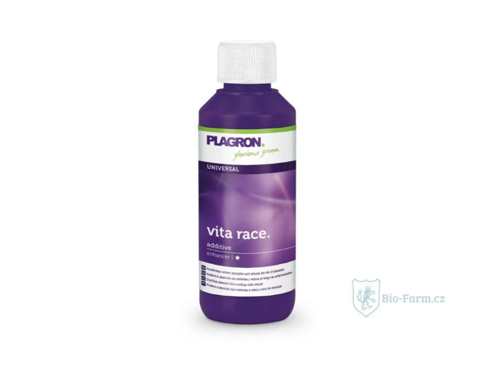 Univerzální doplněk Plagron Vita Race se používá od začátku pěstování do třetího týdne květu. Rostlinám dodává kromě živin (fosfor a draslík), vitamínů, aminokyselin, stopových prvků a přírodních hormonů také železo.