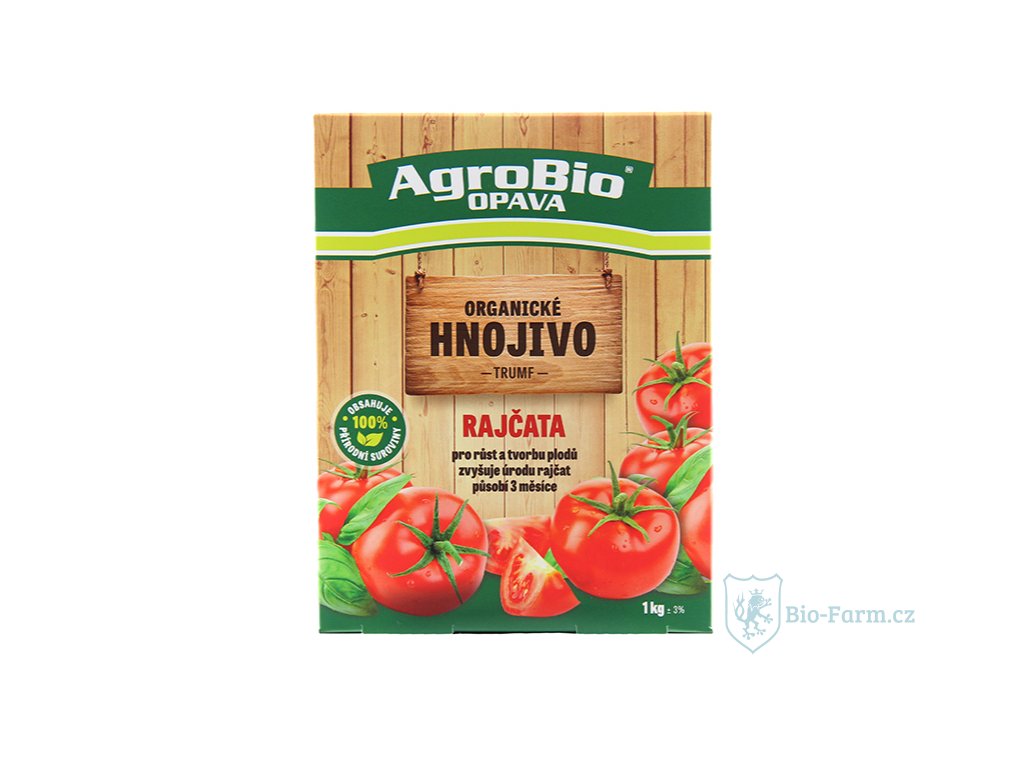 Trumf Rajčata je granulované přírodní organické hnojivo na rajčata, vyrobené především z kostní a péřové moučky, krevní moučky, vinassy a kakaových slupek. Zvýšený obsah draslíku působí příznive na tvorbu plodů, jejich dozrávání a jejich trvanlivost po sklizni při skladování.Hnojivo na rajčata obsahuje také hořčík pro svěží zelenou barvu rostlin. Dlouhodobě působící hnojivo - až 3 měsíce. Vhodné pro bio zahradku, ekologické pěstování.