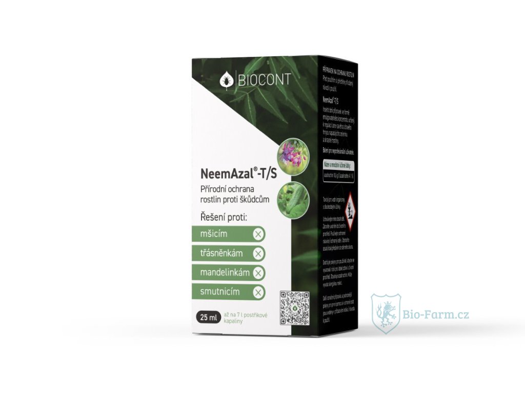 NeemAzal je postřikový biologický insekticidní přípravek z výtažku tropické rostliny Azadirachta indica proti savým a žravým škůdcům jako jsou mšice, molice, třásněnky. Velmi dobře funguje také proti mandelince a minujícím škůdcům, například proti makadlovkám na rajčatech (Tuta absoluta). Dávka je 3 ml na 0,5-1 l vody na 10 m2. Lze jej použít i 3 dny před nasazením bioagens do skleníku. Více viz příbalová informace.https://www.biocont.cz/blog/kalamita-msic/