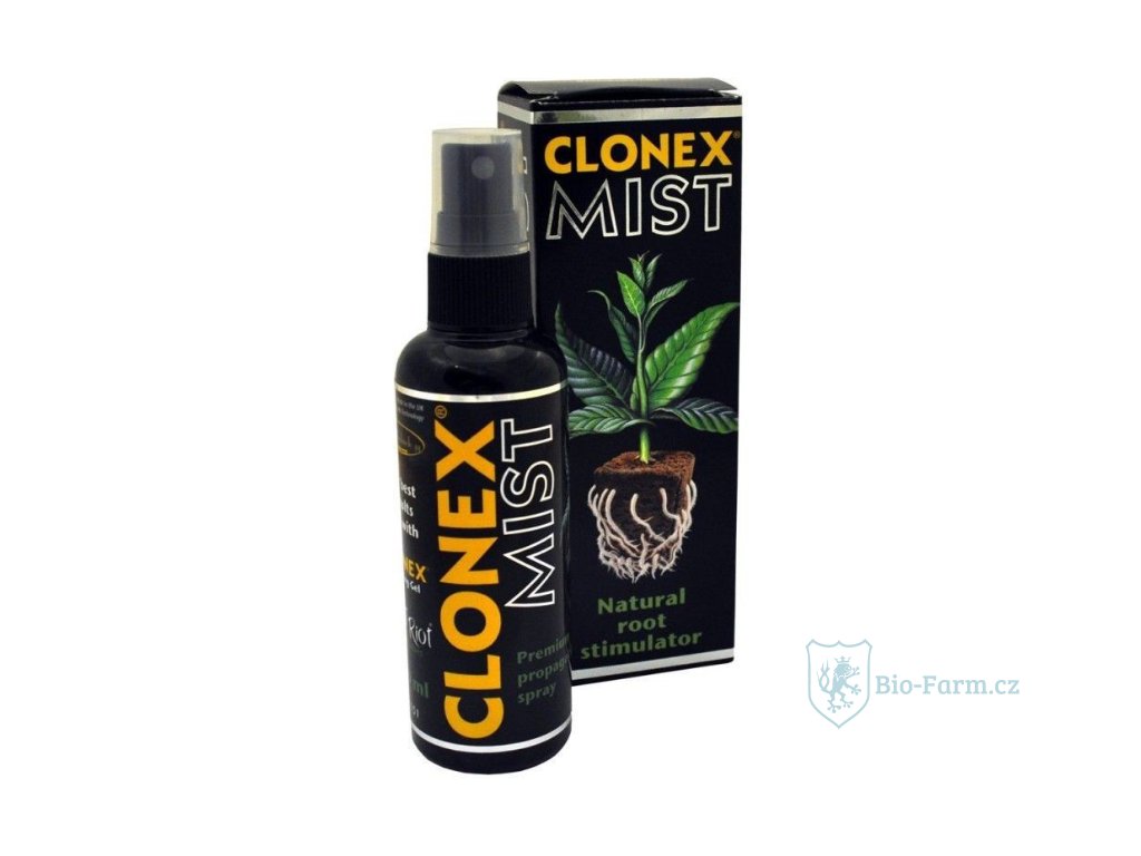 Clonex® Mist - přírodní růstové hormony, vitamíny a minerály pro řízky ve spreji. Byl vyvinutý speciálně pro ušpěšný proces klonování či tzv. řízkování rostlin. Rozvíjí jedinečným způsobem kořenový systém a během 10 dnů byl zjištěn nárůst velikosti kořenů o 30% a dokonce o 156% více nových kořenů. Balení 100 ml