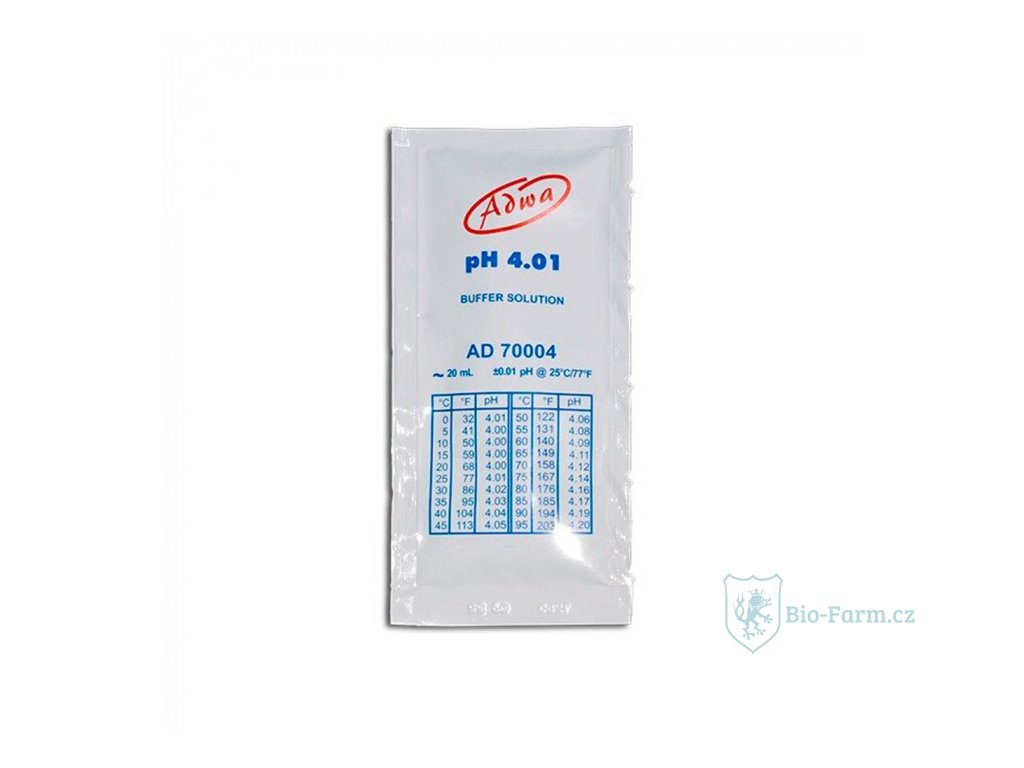 Adwa kalibrovací roztok pH 4,01. Sáček o objemu 20ml. Pro přístroje na měření pH ve vodě nebo živném roztoku.