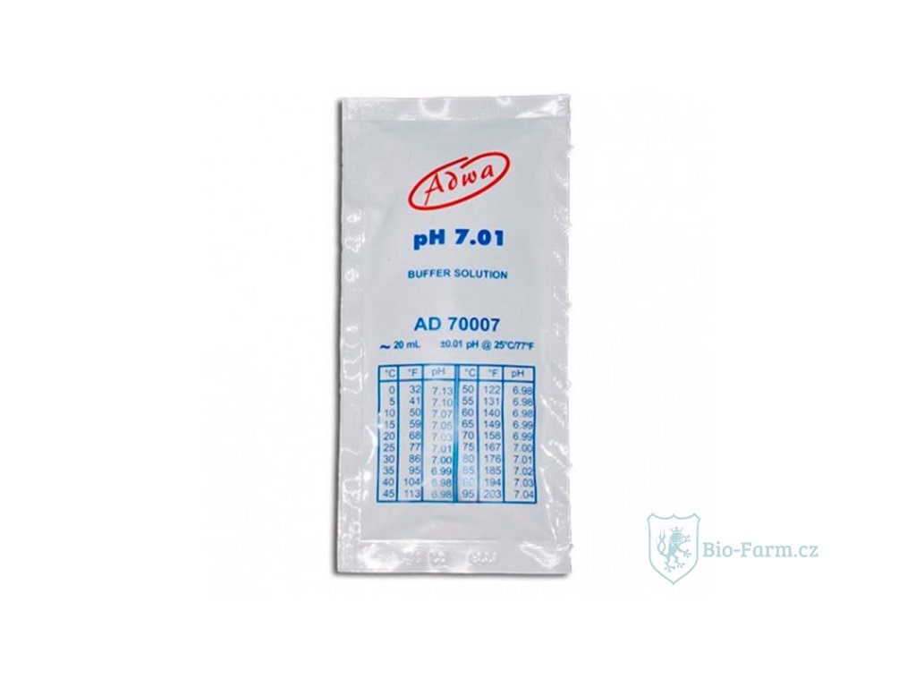 Adwa kalibrovací roztok pH 7,01. Sáček o objemu 20ml. Pro přístroje na měření pH ve vodě nebo živném roztoku.