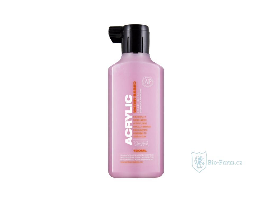 Lahvičky ACRYLIC PAINT Refill jsou stejné vysoce kvalitní barvy na vodní bázi, které jsou netoxické, schválené ACMI a nesou značku AP. Montana ACRYLIC 180ml je nejen ideální pro doplňování vašich AKRYLOVÝCH popisovačů Montana, ale také nabízí širokou škálu možných aplikačních technik, jako je air brush, smíšená média, nanášení štětcem a samozřejmě je lze kombinovat s odpovídající barvou z řady barev ve spreji Montana GOLD. . Lze aplikovat na téměř všechny povrchy, jako je plátno, dřevo, sklo, stěny a kov. Lahve jsou průhledné pro snadné posouzení zbývajícího obsahu. Ideální pro použití pro airbrush! Použití v kombinaci s prázdnými popisovači Montana ACRYLIC 0,7mm, 2mm, 15mm, 30mm a 50mm. Bez rozpouštědel. Ředitelný vodou.