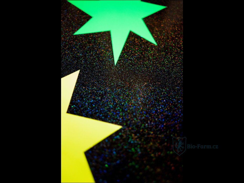 Bezbarvý film obsahující drobné holografické třpytky, ideální pro použití jako druhá vrstva na předem připravenou barvu