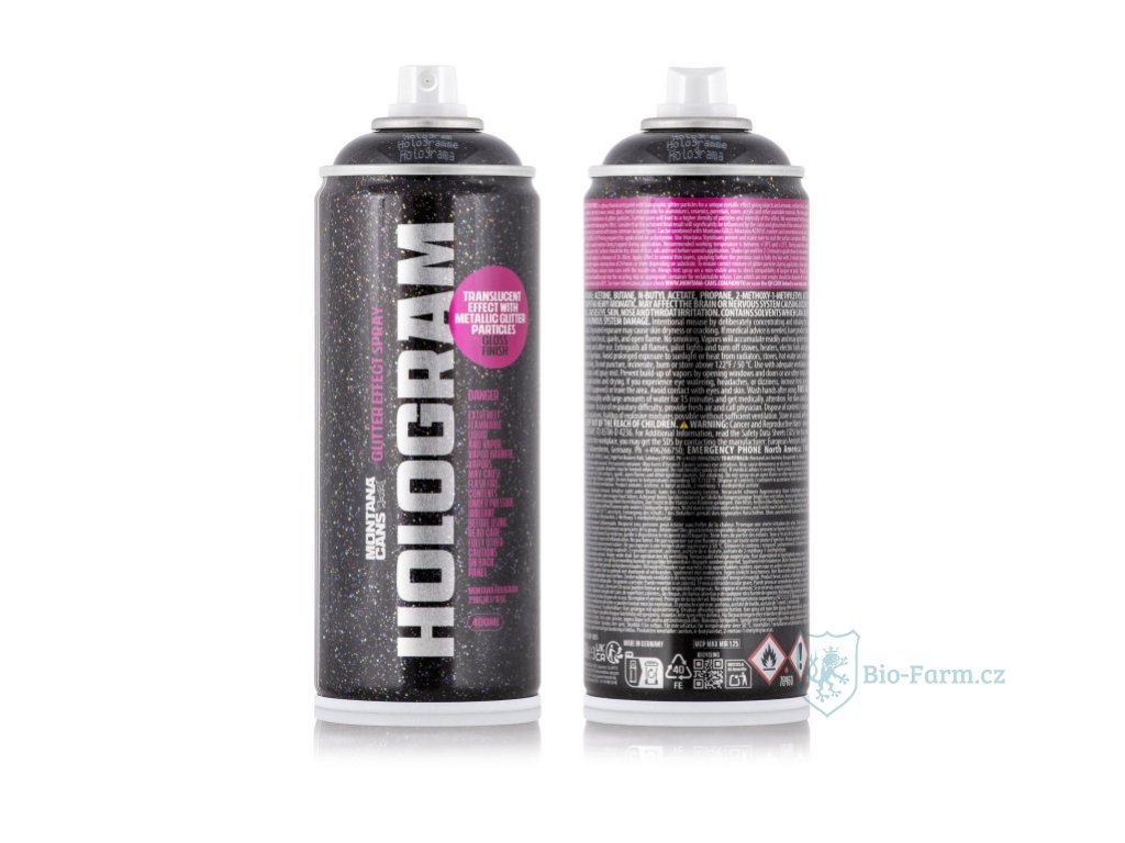 APLIKACE: Pro dosažení nejlepších výsledků jej doporučujeme aplikovat na Montana GOLD Shock Black S9000 nebo tmavě zbarvenou bázi, která měla čas vytvrdnout a umožnila kontrast odrážet třpytivé částice. Čirý základ spreje Hologram Glitter lze snadno překrýt mnoha běžnými typy laků. Doporučujeme používat ve spojení s Montana GOLD, Montana ACRYLIC fixy a konvenčními akrylovými barvami. (Není kompatibilní s barvami na syntetické bázi!).