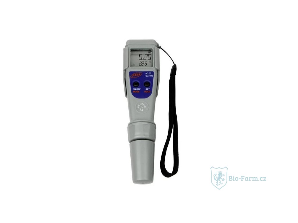 Tento přístroj umožňuje měření EC/TDS/°C/°F, je kompletně vodotěsný a automaticky kompenzuje teplotu, s možností změny jednotek zobrazení a výměny sondy.