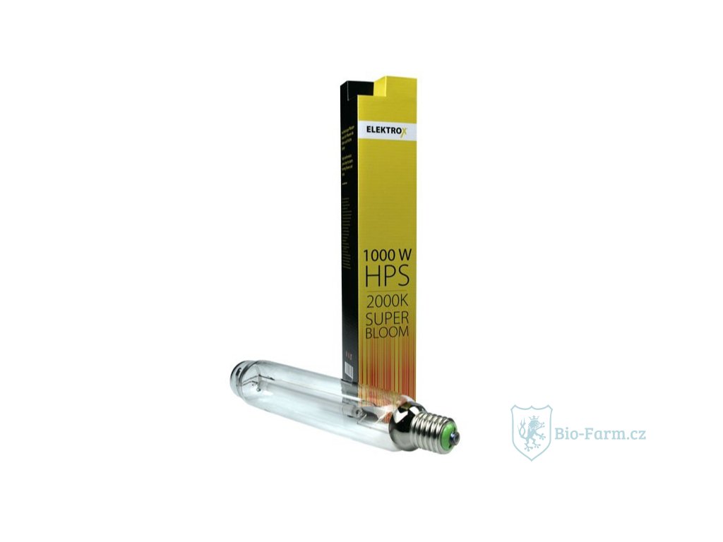 Vysokotlaké 1000W světlo zásobuje rostliny světelným tokem 130 000 lumenů s účinností 150lm/W. Výbojka Elektrox 1000W Super Bloom je vhodná pro horizontální i vertikální osvětlení rostlin. Kompatibilní s běžnými i digitálními předřadníky a s objímkami E40.