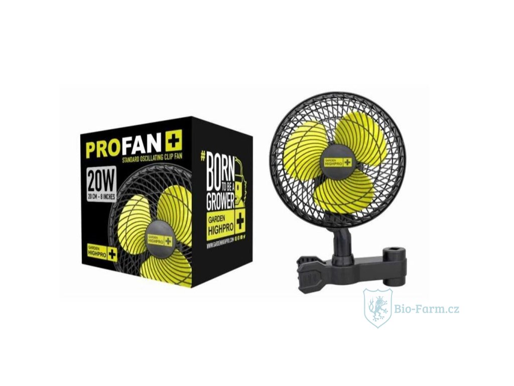 Oscilační klipsnový ventilátor od Garden High Pro - PROFAN 20W/20cm je určen především pro pěstební stany. Tento oscilační klipsňák disponuje kvalitním, 100% měděným motorem. V balení jsou robustné plastové úchyty na jednoduché vertikální i horizontální uchycení. Díky speciální funkci automatické oscilace vzduch cirkuluje více směry.